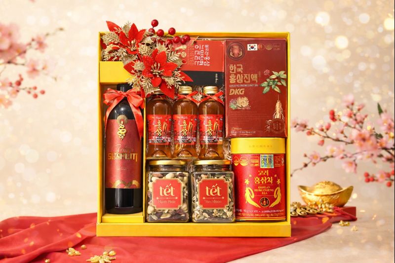Sự kết hợp hài hòa giữa hồng sâm – trà sâm – hạt dinh dưỡng và rượu vang mang đến giá trị quà tặng vừa chăm sóc sức khỏe, vừa thể hiện sự tinh tế và đẳng cấp trong nghệ thuật biếu tặng, gửi gắm lời chúc năm mới thịnh vượng – hanh thông – bền vững.