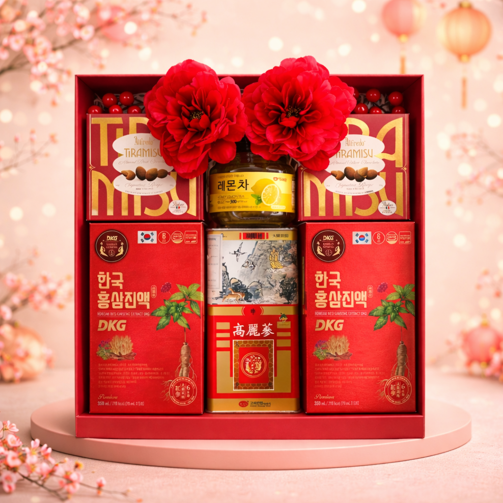 Sự kết hợp hài hòa giữa hồng sâm – sâm củ – chanh mật ong và socola mang đến giá trị quà tặng vừa chăm sóc sức khỏe, vừa nhẹ nhàng tinh tế, gửi gắm lời chúc năm mới bình an – sung túc – viên mãn.